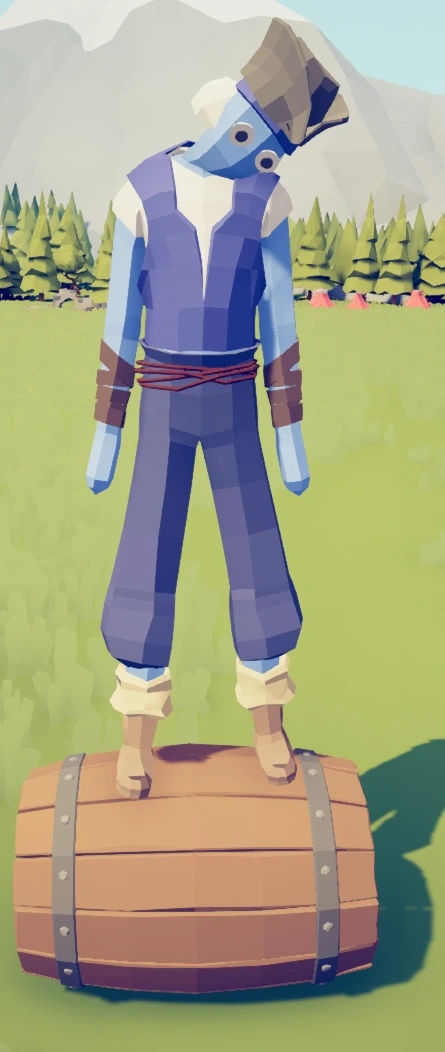 Представляет собой Селянина, одетого в белую рубаха, на которую надет жилет, заправленный в штаны, расширенные книзу, а на ноги надеты светло-коричневые сапоги. Опоясан верёвкой, а запястья забинтованы. На голове присутствует головной убор в виде треуголки, скрывающий седые волосы юнита. Бочковый эквилибрист стоит на большой деревянной бочке с порохом, при помощи которой он передвигается. При контакте с противником бочка взрывается, нанося урон врагам, а сам юнит при этом погибает.