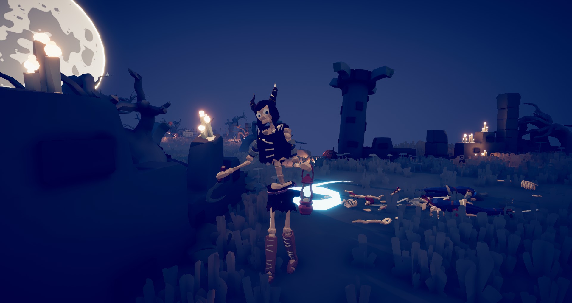 Некромант стреляет из своей лампы черепами, которые со временем наносят большой урон врагу и превращает юнита в скелета, принцип работы таков: если превращён будет юнит ближнего боя, то он превратится в Скелета-воина и будет иметь низкий запас здоровья, но в тоже время он сохранит своё оружие и размеры, с юнитами дальнего боя тоже самое, но они превратятся в Скелета-лучника, стоит упомянуть, что если некромант попадёт по уже превращённому, то он окончательно превратится в Скелета-воина (То бишь так же получит костяной меч и щит), или в скелет-лучника (Так же получит огненный лук) . Серпом некромант бьёт близко подошедших к нему юнитов, в этом же случае он призовёт могилы, которые оттолкнут противников.