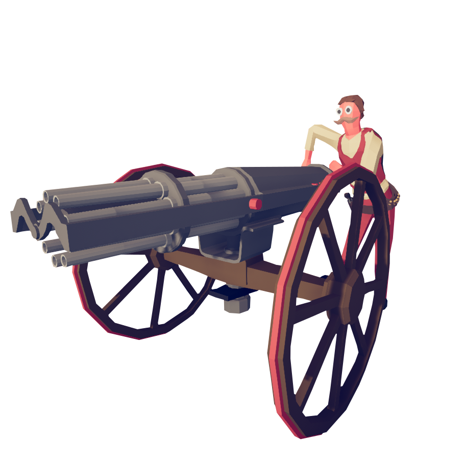 Пулемёт Гатлинга основан на реально существующей картечнице Гатлинга. Пулемёт стоит на огромных деревянных колёсах. Сзади у пулемёта есть ручка, которая во время боя будет крутиться. Сам юнит носит усы, а по бокам у него патроны для пулемёта.