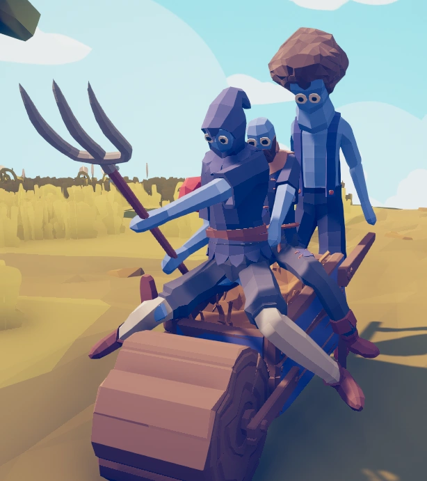 Сама тачка сделана из дерева, с одним большим колесом спереди и сеном внутри. Юнит, толкающий её, обладает каштановым афро, странной формой челюсти; также он гораздо выше других юнитов. Юнит, сидящий в задней части тачки, кажется, селянин с бородой и одетый в куртку, который бросает яблоки. Юнит в передней части тачки похож на обычного фермера. Все они могут быть красного или синего цвета.